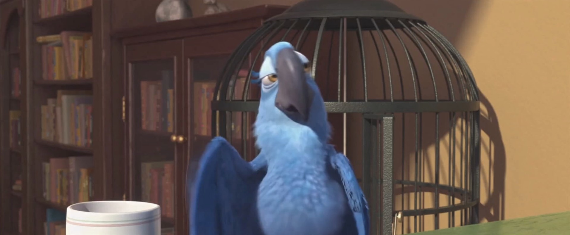 Блю — одомашненный ара голубого цвета, главный протагонист мультфильма «Рио». Птица имеет редкую особенность — неспособность летать, что принципиально отличает его от диких сородичей.